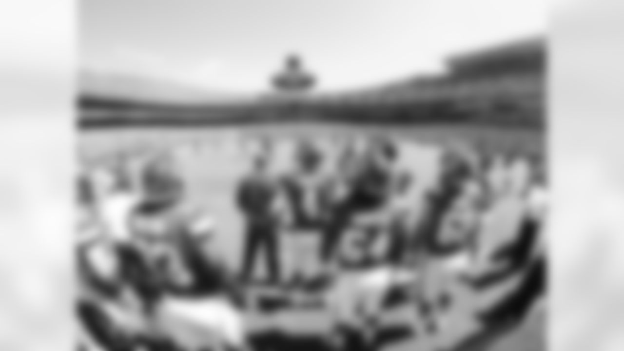 Members of the Kansas City Chiefs huddle prior to the first preseason game against the Seattle Seahawks at Arrowhead Stadium on Saturday, August 13, 2016.