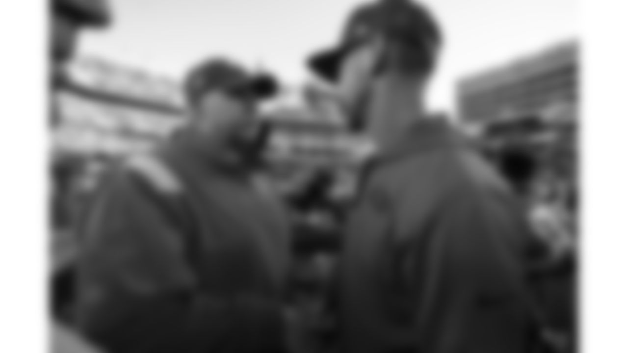 Kansas City Chiefs Defensive Coordinator Steve Spagnuolo and Head Coach Andy Reid during an NFL football game against the San Francisco 49ers at Levi's Stadium on October 23, 2022.