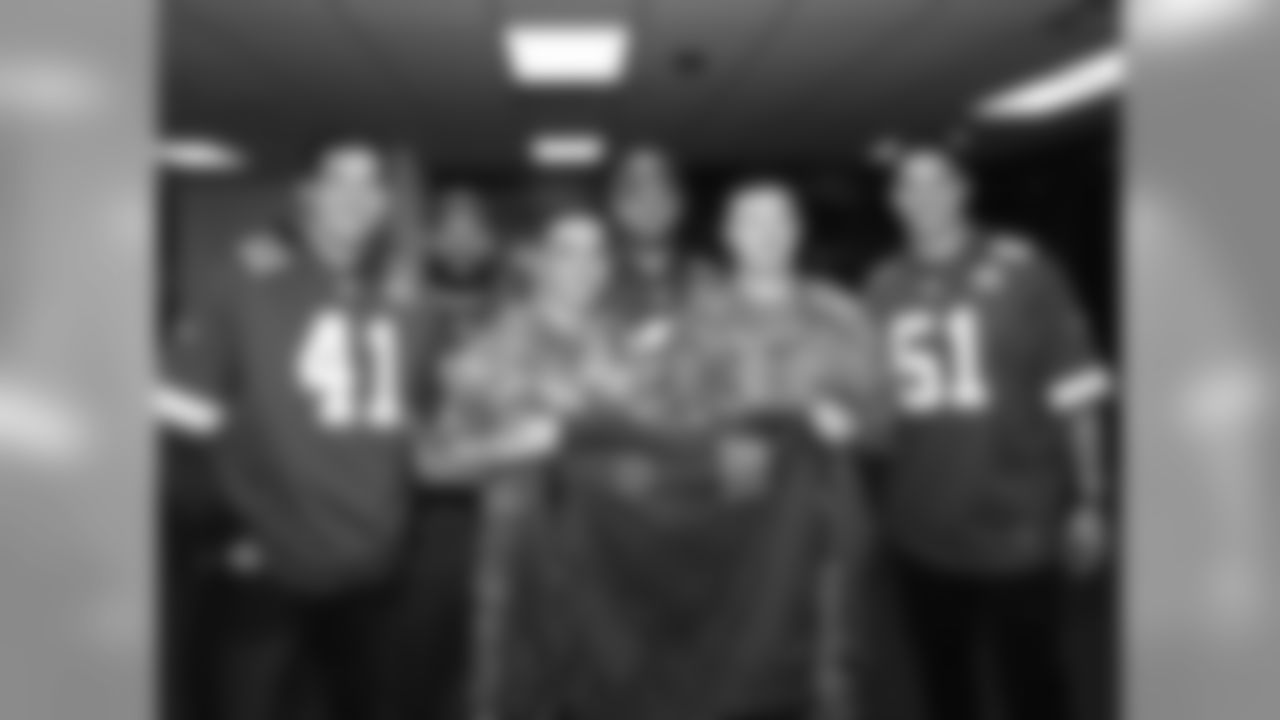 Soldiers from Fort Riley, as well as members of the Kansas and Missouri National Guard, were enjoying a stadium tour when Chiefs' linebacker Frank Zombo, fullback Anthony Sherman, punter Dustin Colquitt and long snapper James Winchester surprised the troops in the locker room.