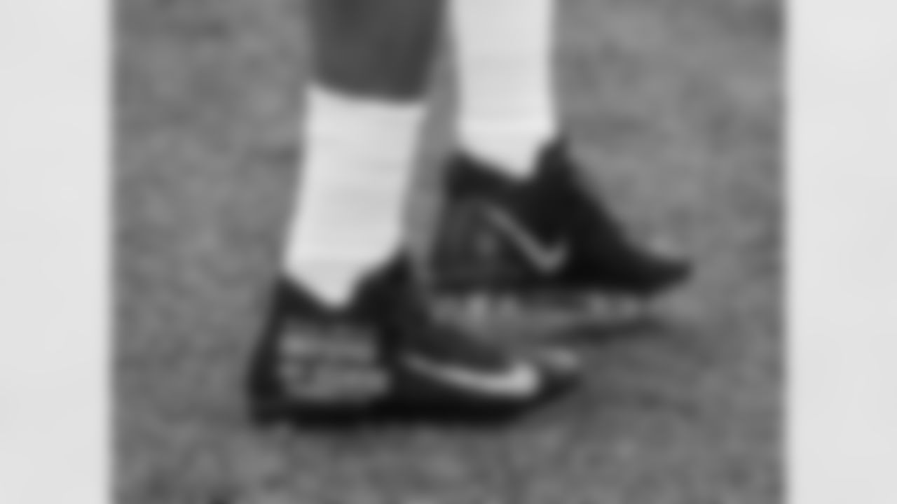 His Cleats:"For me, it's a surprise because it's a tough topic to put on a cleat. I'm pumped. I didn't have any expectations, but obviously to have the foundation logo on there and the initials, I thought it turned out great."