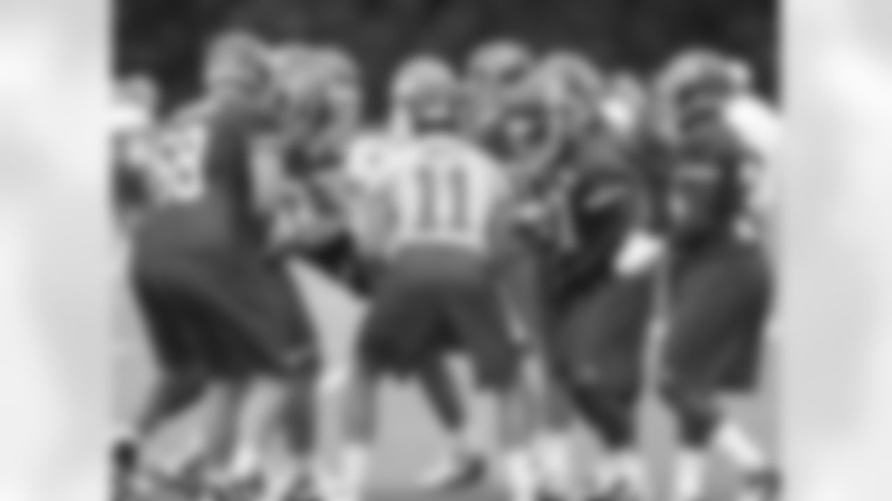 Eligible players take to the practice field at Missouri Western State University, in St. Joseph, Missouri.