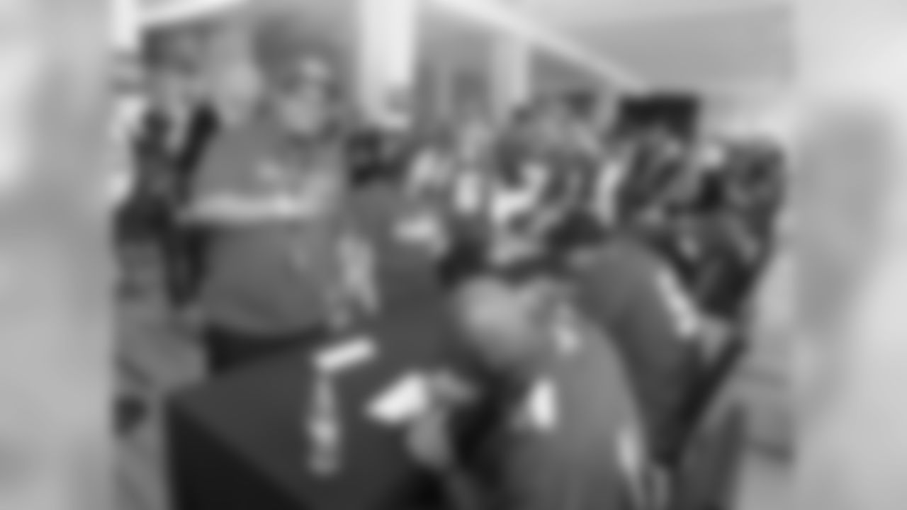 First year Chiefs Season Ticket Members join Chiefs rookie players, cheerleaders, KC Wolf, and Ambassadors at Arrowhead.